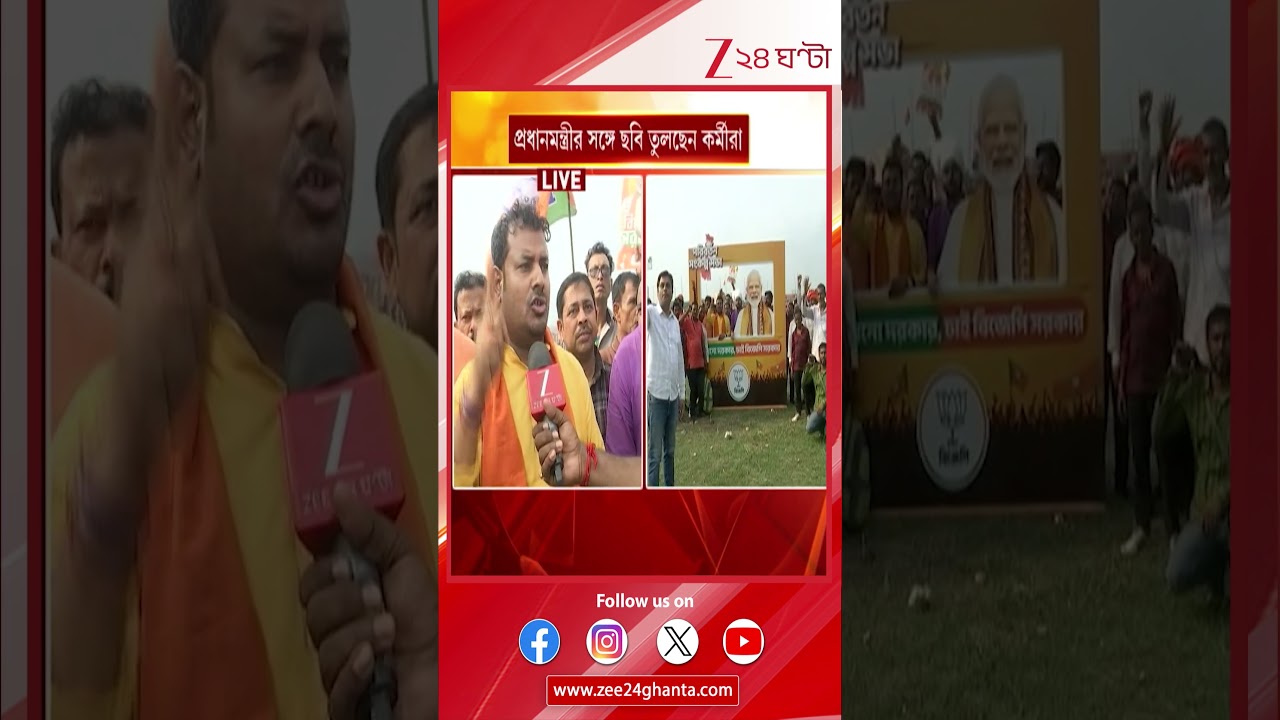 #Zee24Ghanta Narendra Modi Brigade | ব্রিগেডে সেলফি জোন! প্রধানমন্ত্রীর সঙ্গে ছবি তুলছেন কর্মীসমর্থকরা!