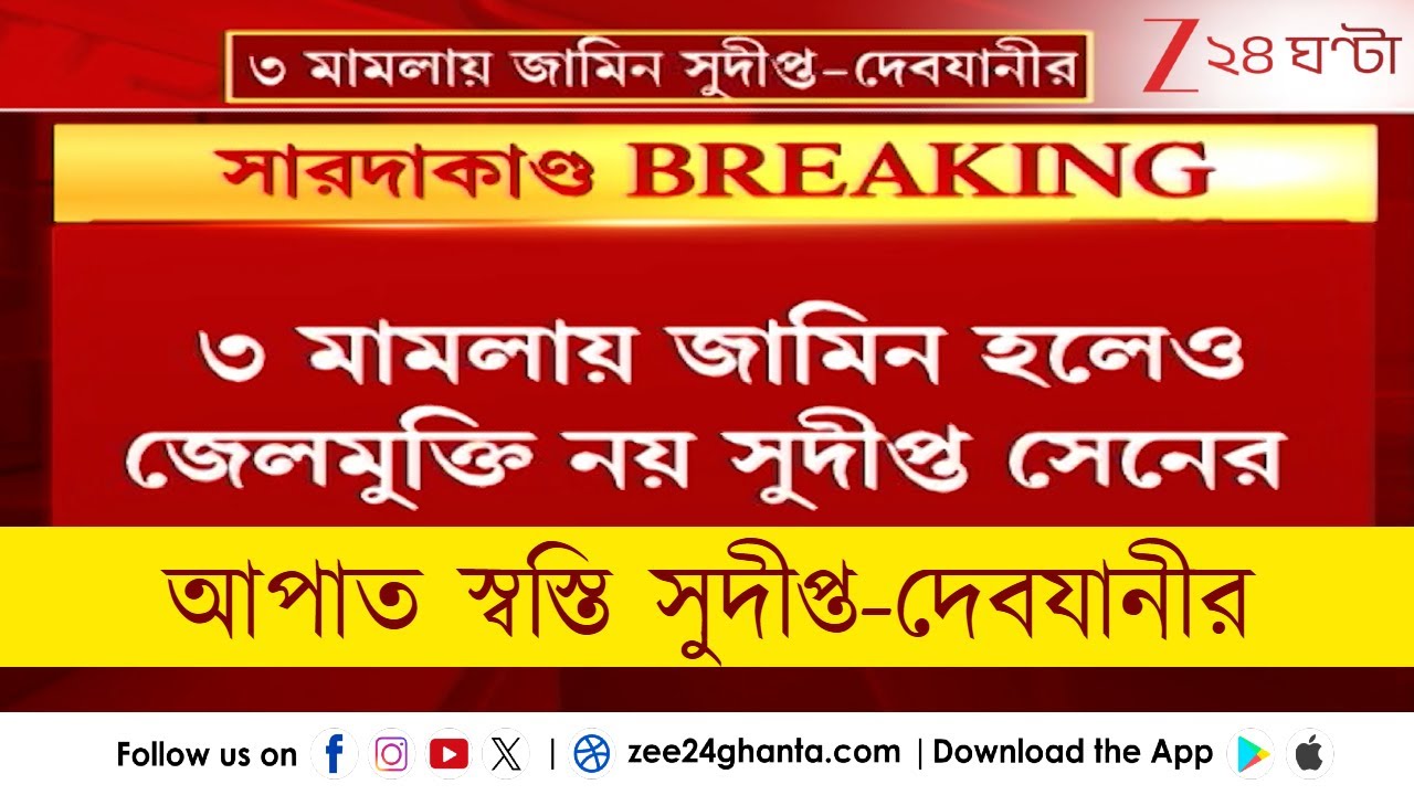 #Zee24Ghanta Saradha Chit Fund Scam: সারদাকাণ্ডের ৩ মামলায় জামিন সুদীপ্ত-দেবযানীর, মিলছে না জেলমুক্তি