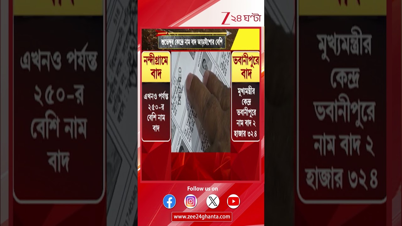 #Zee24Ghanta SIR in Bengal: মমতার ভবানীপুরে বাদ ২৩২৪ নাম, শুভেন্দুর নন্দীগ্রামে এখনও পর্যন্ত বাদ ২৫০র বেশি নাম