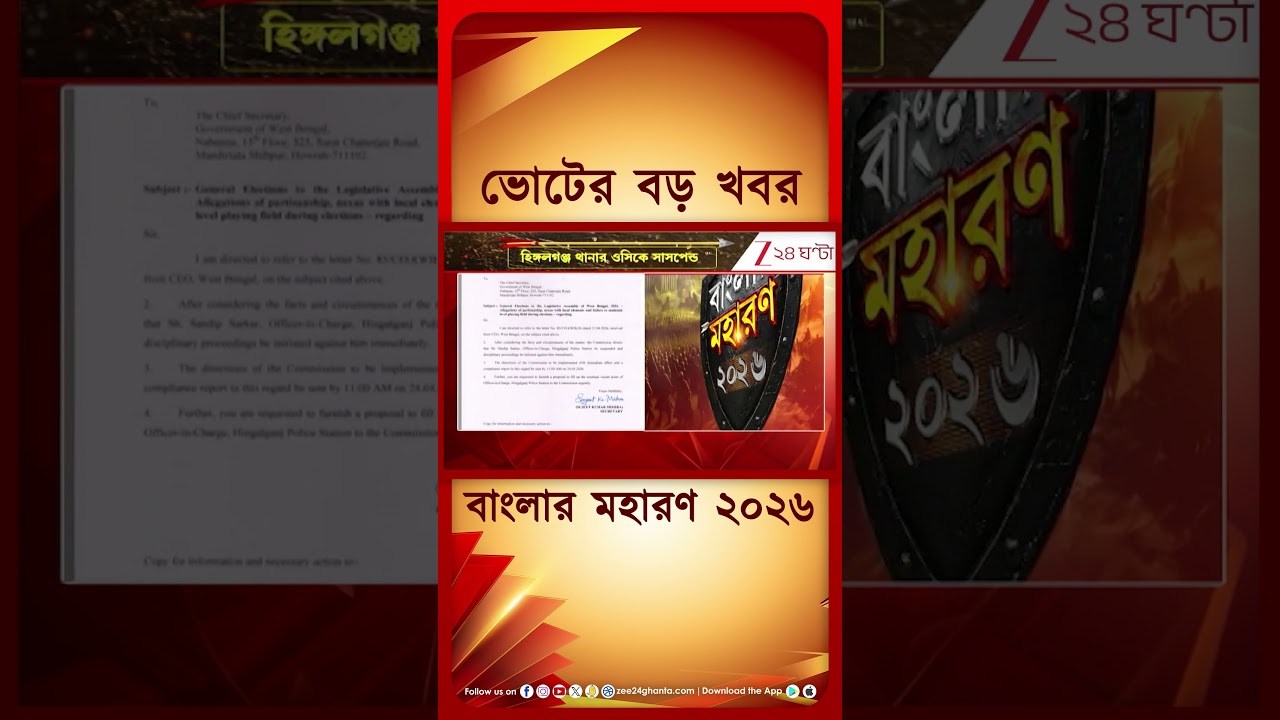 #Zee24Ghanta WB Assembly Election 2026 | হিঙ্গলগঞ্জ থানার ওসিকে সাসপেন্ড #Shorts