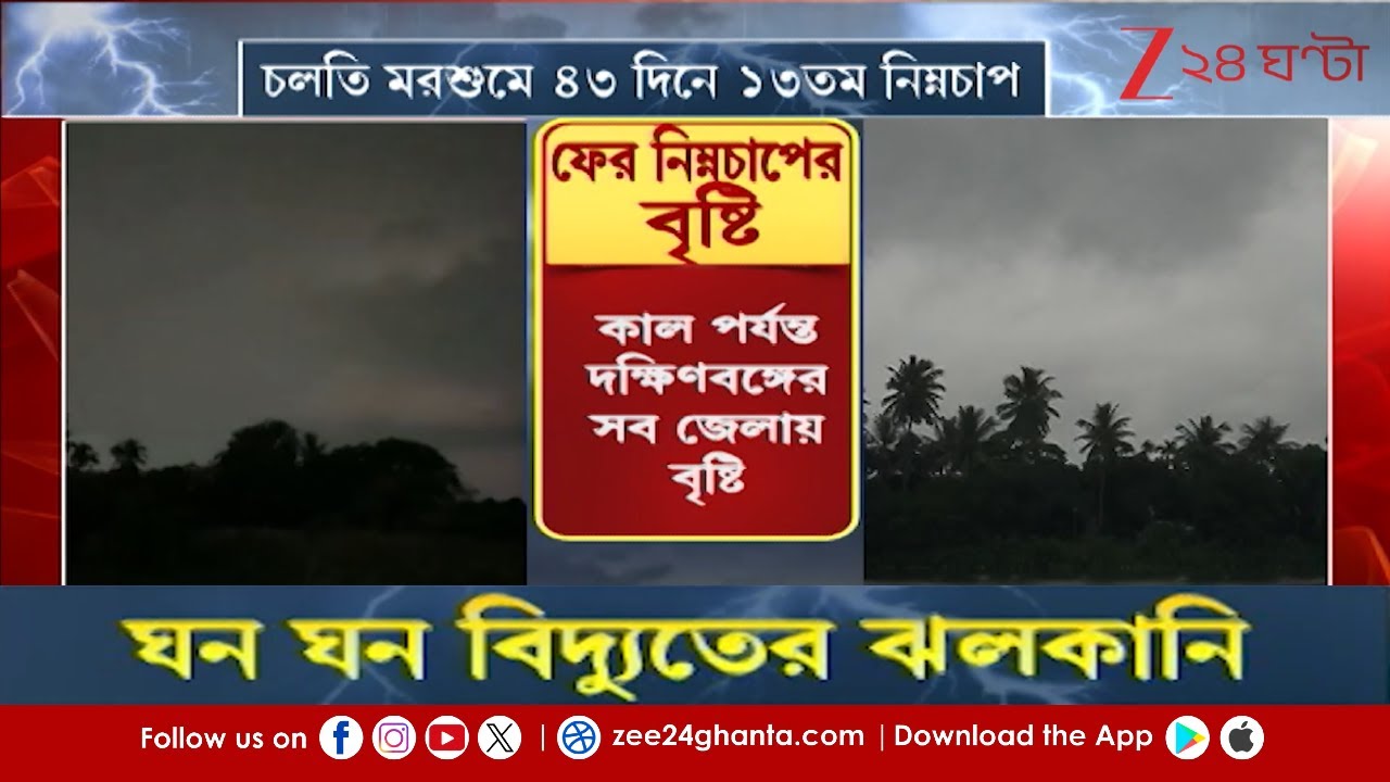 #Zee24Ghanta Weather Update | চলতি মরশুমে ৪৩ দিনে ১৩তম নিম্নচাপ! দক্ষিণ ২৪ পরগনায় অতি ভারী বৃষ্টির সতর্কতা