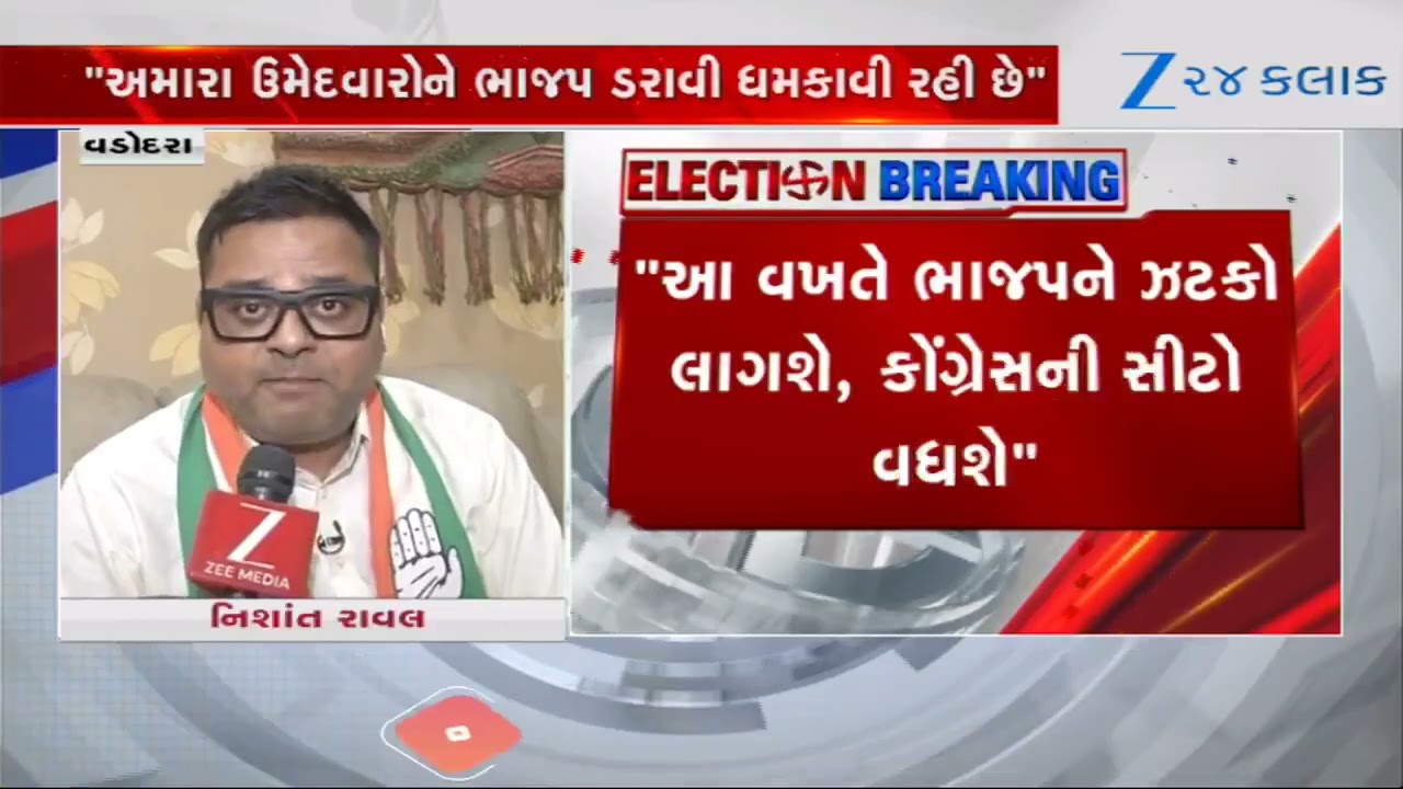 #Zee24Kalak “ઉમેદવારોને ભાજપ ડરાવી ધમકાવી રહી છે”Congressનું ઉમેદવાર બચાવો અભિયાન મુદ્દે Nishant Rawalનું નિવેદન