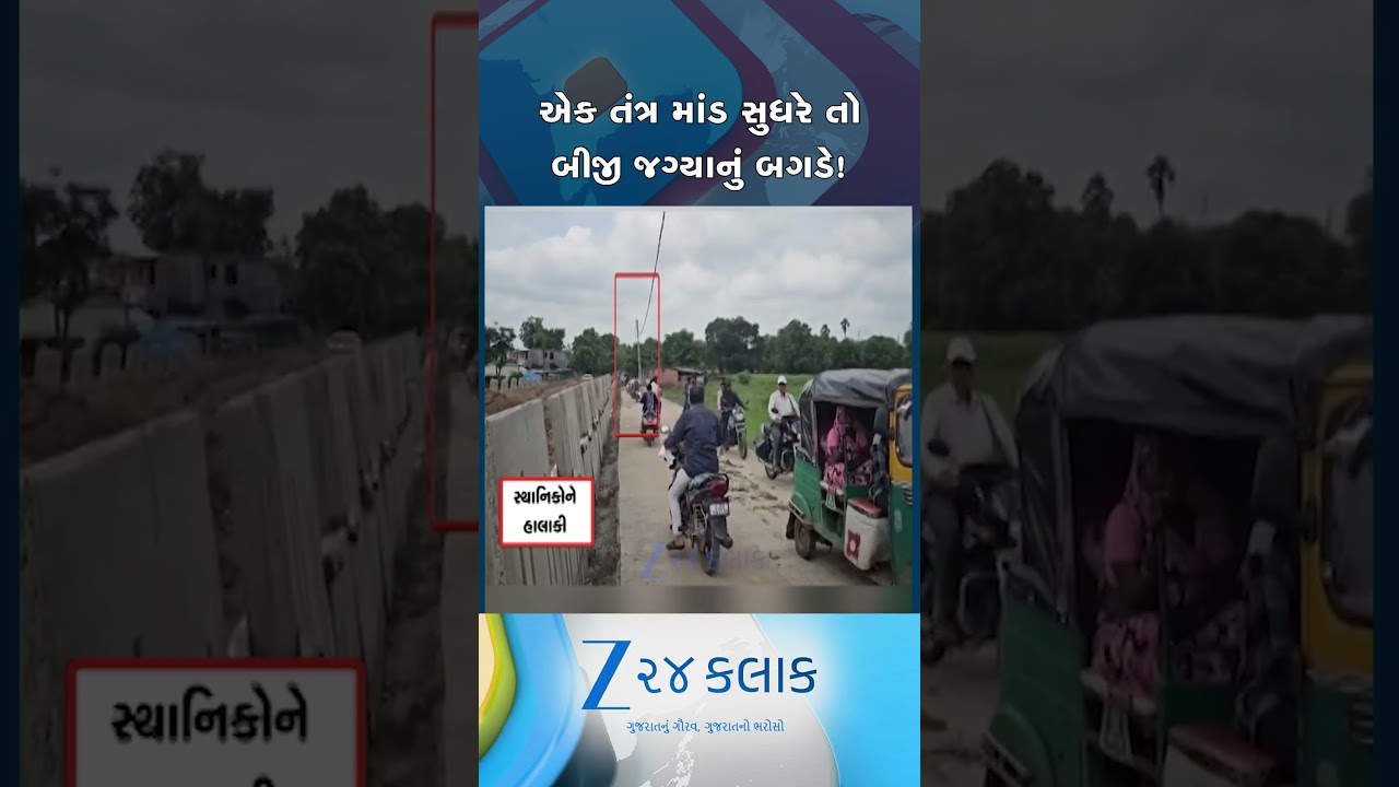 #Zee24Kalak એક જગ્યાનું તંત્ર સુધરે તો બીજી જગ્યાનું બગડે, પંચમહાલના કાલોલમાં થાંભલા હટાવ્યા વિના રસ્તો બનાવ્યો