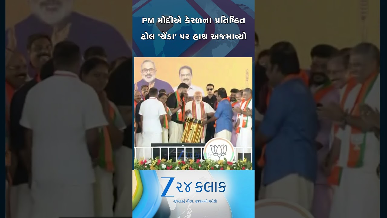 #Zee24Kalak કેરળમાં જાહેર સભા દરમિયાન પ્રધાનમંત્રી નરેન્દ્ર મોદીએ કેરળના પ્રતિષ્ઠિત ઢોલ ‘ચેંડા’ પર હાથ અજમાવ્યો