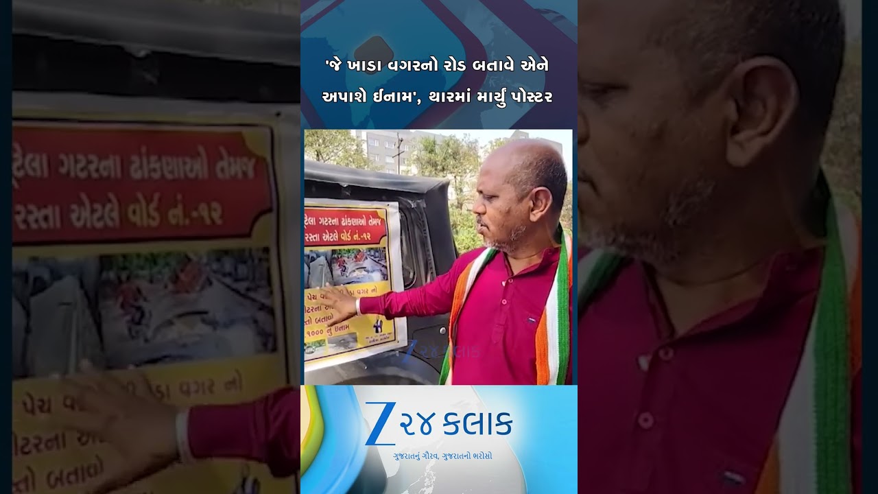 #Zee24Kalak કોંગ્રસે પ્રમુખ ઈનામ આપશે, વડોદરામાં ખરાબ રસ્તાને લઈ અનોખો વિરોધ, નેતાએ થારમાં લગાવ્યા પોસ્ટર