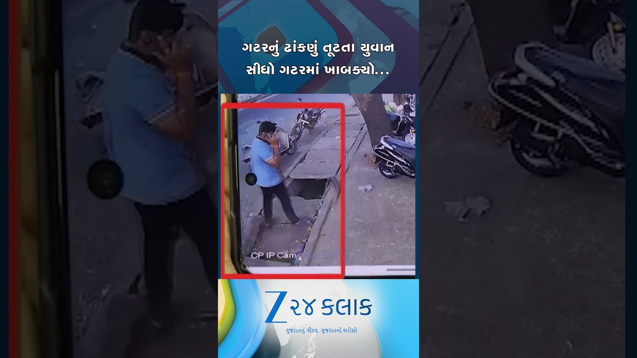 #Zee24Kalak ગટરનું ઢાંકણું તૂટતા યુવાન સીધો જ ગટરમાં ખાબક્યો, વલસાડના પારડીની ઘટના CCTVમાં કેદ