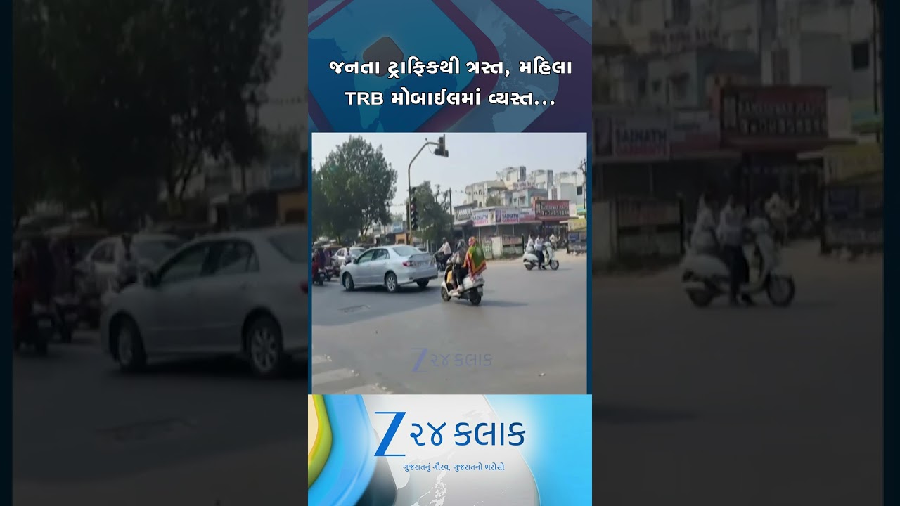 #Zee24Kalak જનતા ટ્રાફિકથી ત્રસ્ત, મહિલા TRB મોબાઈલમાં વ્યસ્ત, વડોદરામાં ટ્રાફિક વચ્ચેનો વીડિયો વાયરલ