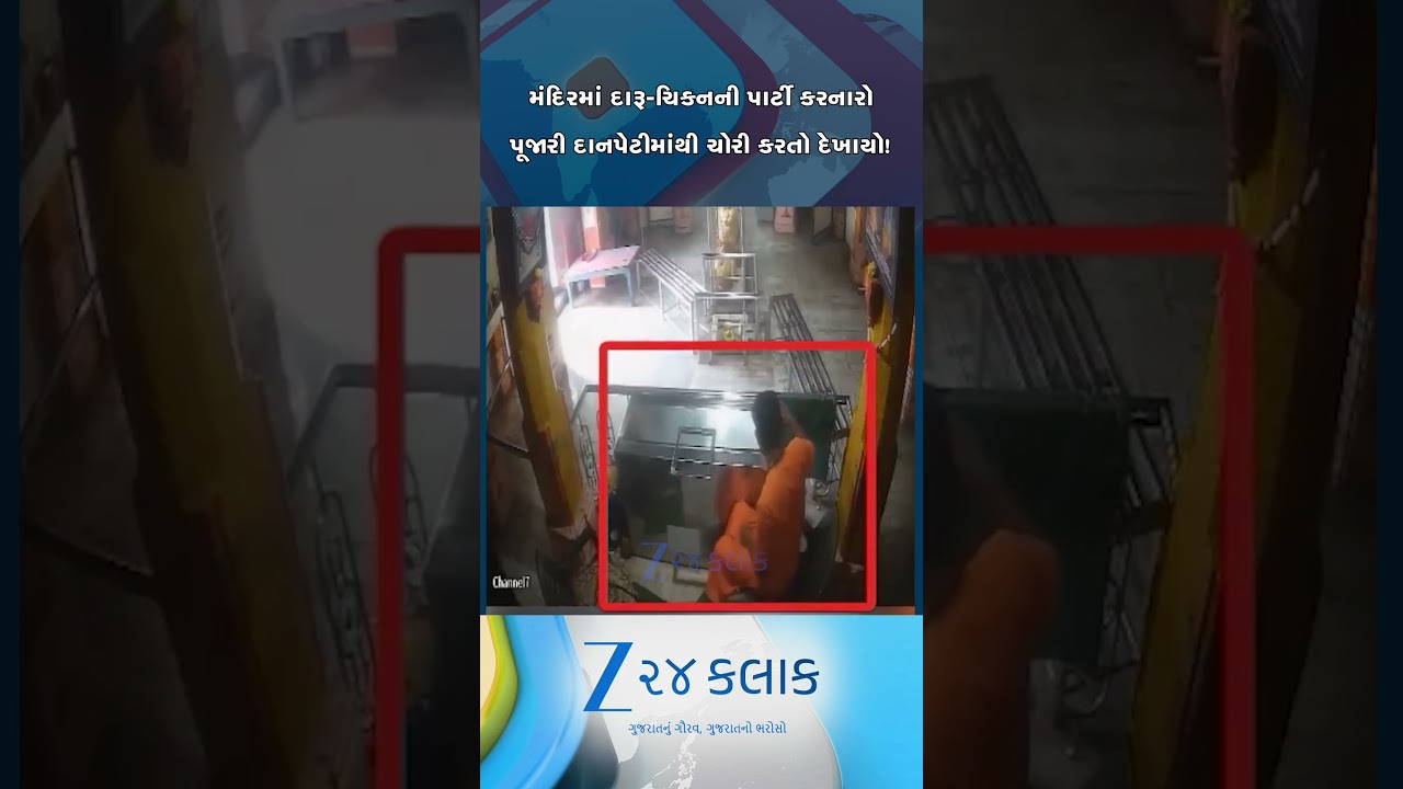 #Zee24Kalak જૂનાગઢના અંબાજી મંદિરમાં દારૂ-ચિકનની પાર્ટી કરનારો પૂજારી દાનપેટીમાંથી ચોરી કરતો દેખાયો