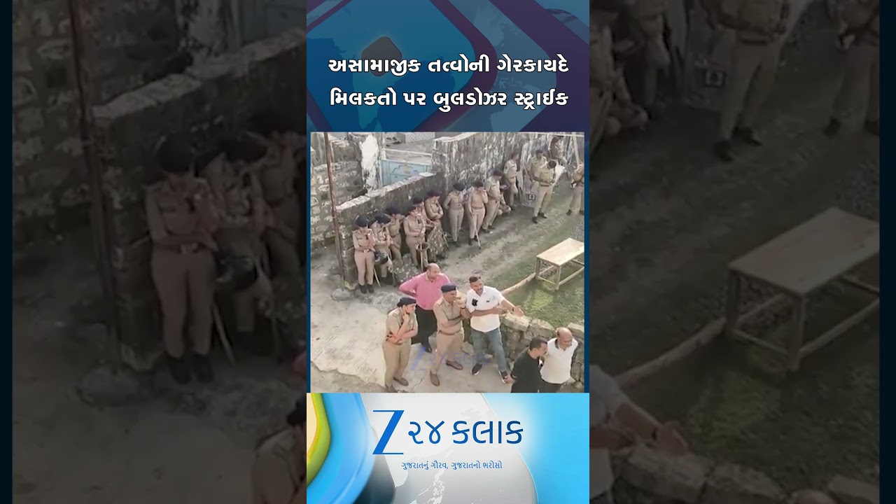 #Zee24Kalak જૂનાગઢના ગાંધીગ્રામ વિસ્તારમાં તંત્રની બુલડોઝર સ્ટ્રાઈક, અસામાજીક તત્વોની ગેરકાયદે મિલકતો તોડી પડાઈ