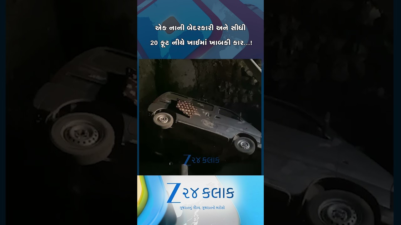 #Zee24Kalak તંત્રની બેદરકારીએ ઈકો કાર 20 ફૂટ ઉંડા ખાડામાં પડી, રાજકોટ ધોરાજીના રસૂલપરા પાસે સર્જાયો અકસ્માત