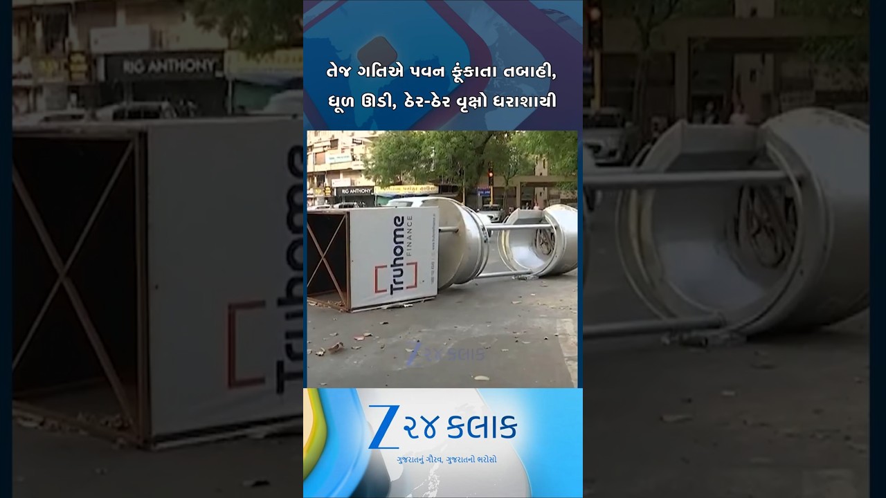 #Zee24Kalak તેજ ગતિએ પવન ફૂંકાતા અમદાવાદમાં તબાહી, અનેક જગ્યાએ વૃક્ષો ધરાશાયી, ધૂળની ડમરીઓ ઊડી