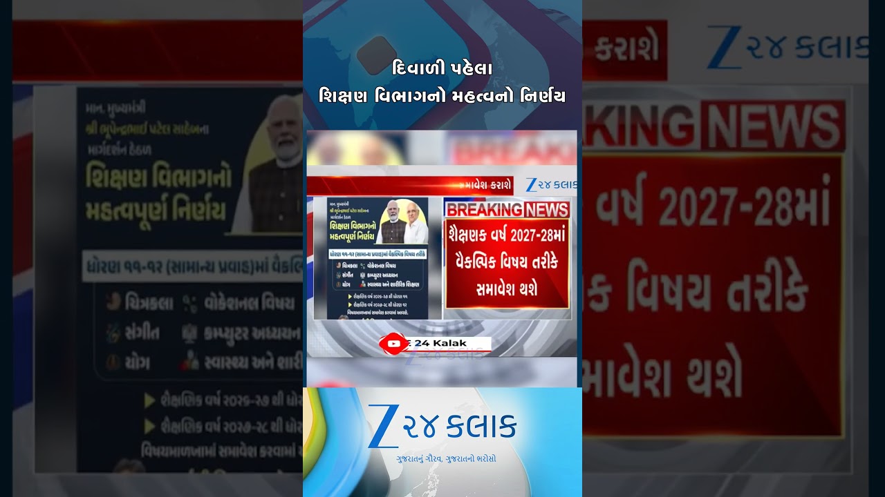 #Zee24Kalak દિવાળી પહેલા શિક્ષણ વિભાગનો મહત્વનો નિર્ણય, ધોરણ 11 અને 12ના વિદ્યાર્થીઓ માટે ખૂબ સારા સમાચાર