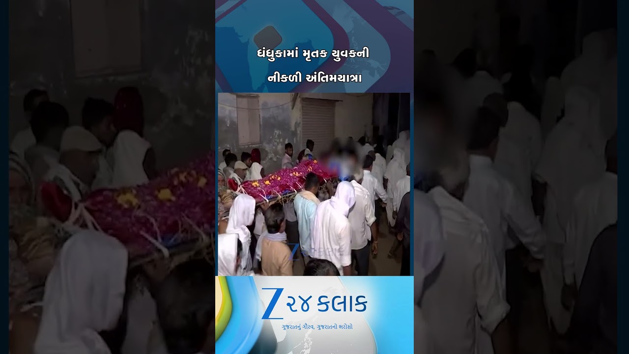 #Zee24Kalak ધંધુકામાં મૃતક યુવકની અંતિમ યાત્રામાં મોટી સંખ્યામાં લોકો જોડાયા, હાલમાં વિસ્તારમાં શાંતિનો માહોલ