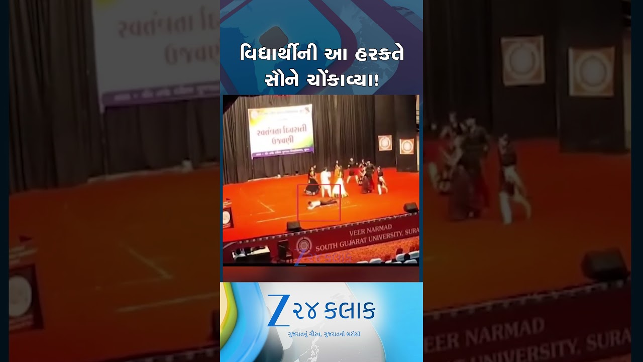 #Zee24Kalak નર્મદ યુનિવર્સિટીના કાર્યક્રમમાં વિચિત્ર ઘટના; સ્ટેજ પર કાર્યક્રમ દરમિયાન એક વિદ્યાર્થી ધૂણવા લાગ્યો
