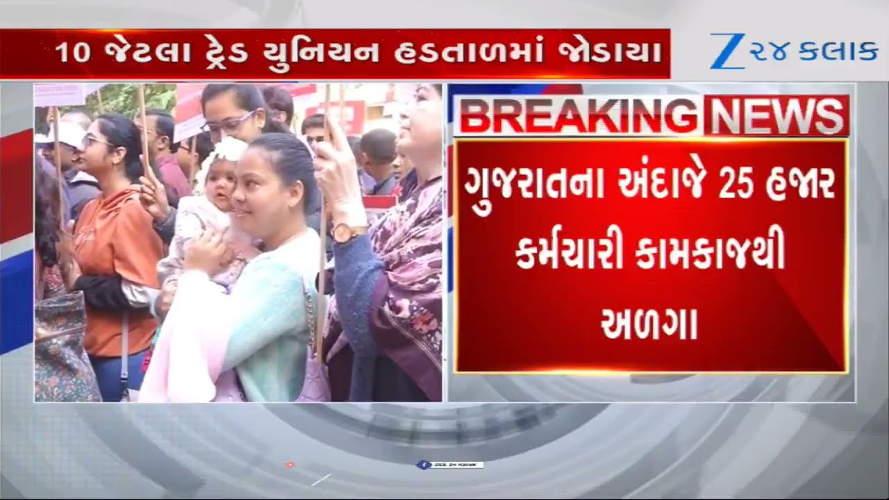 #Zee24Kalak નવા શ્રમ કાયદા સામે ટ્રેડ યુનિયનોનું ‘ભારત બંધ’, ગુજરાતના 25 હજાર બેંક કર્મચારીઓ હડતાળમાં જોડાયા