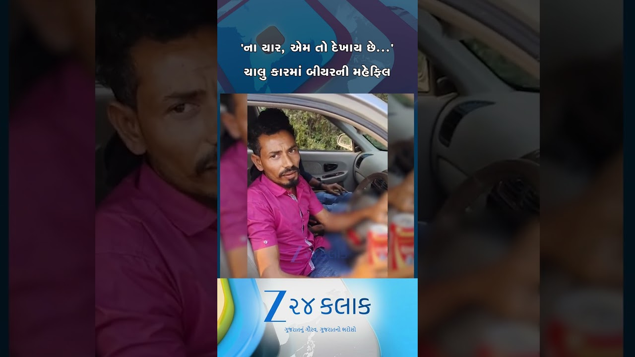 #Zee24Kalak પહેલા ચાલુ કારમાં બીયર ઢીંચ્યું પછી પોલીસ સ્ટેશનમાં માફી માગી: નાગરિકે વીડિયો ઉતારી ફીટ કરાવી દીધા