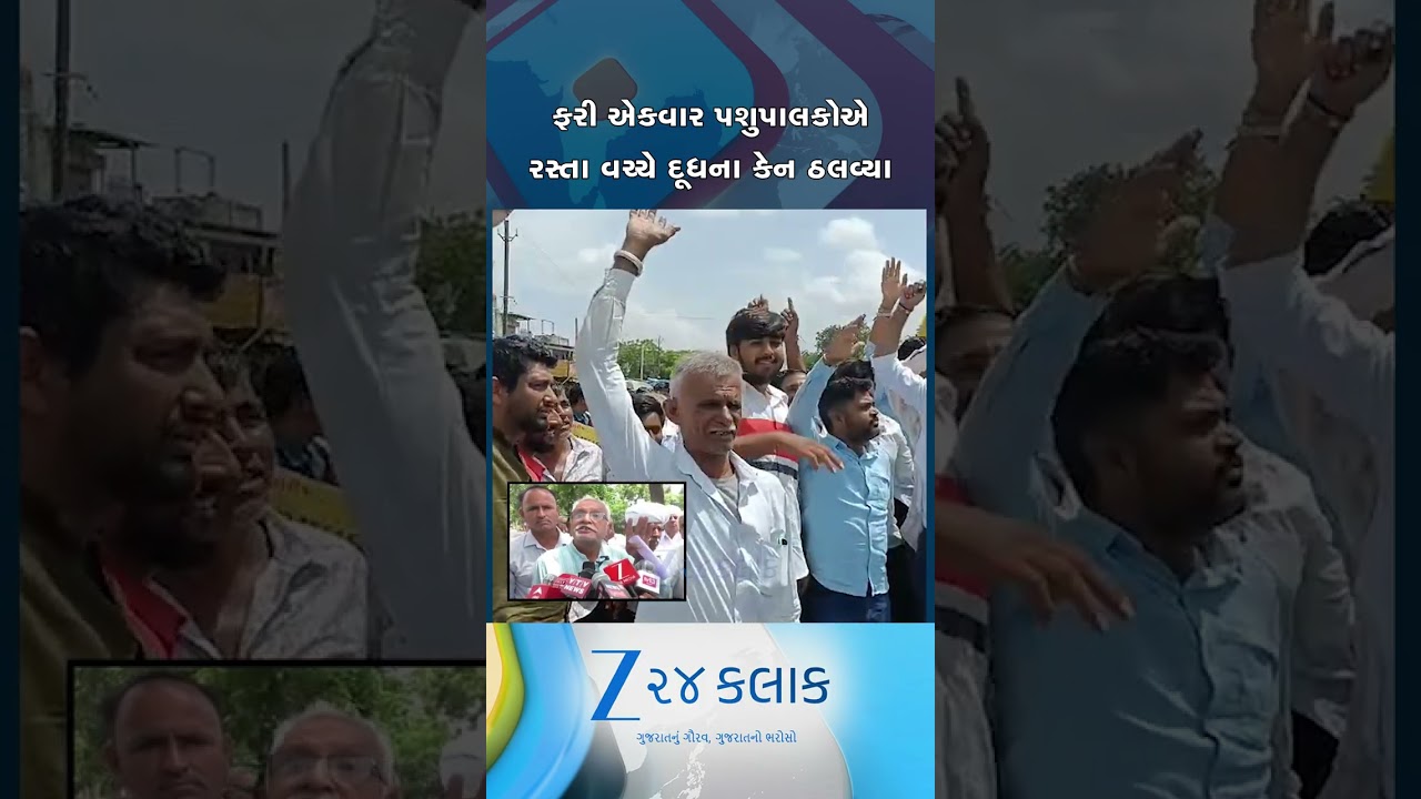 #Zee24Kalak પાટણના હારીજમાં પશુપાલકોએ રસ્તા વચ્ચે દૂધ ઢોળી વિરોધ નોંધાવ્યો, દૂધના યોગ્ય ભાવ ન મળતા લોકો વિફર્યા