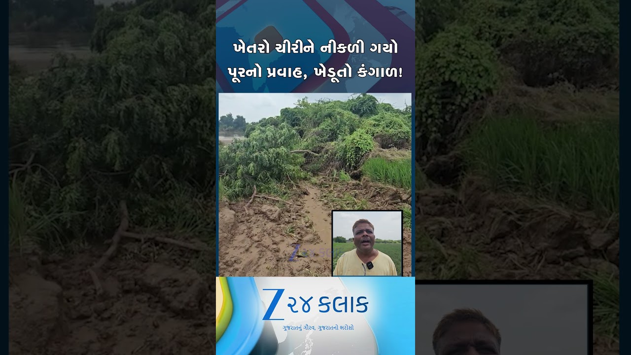 #Zee24Kalak પૂરના પાણીનો પ્રચંડ પ્રવાહ ખેતર ચીરીને નીકળી ગયો, ખેડાના રસિકપુરા ગામના ખેડૂતોને મોટું નુકસાન