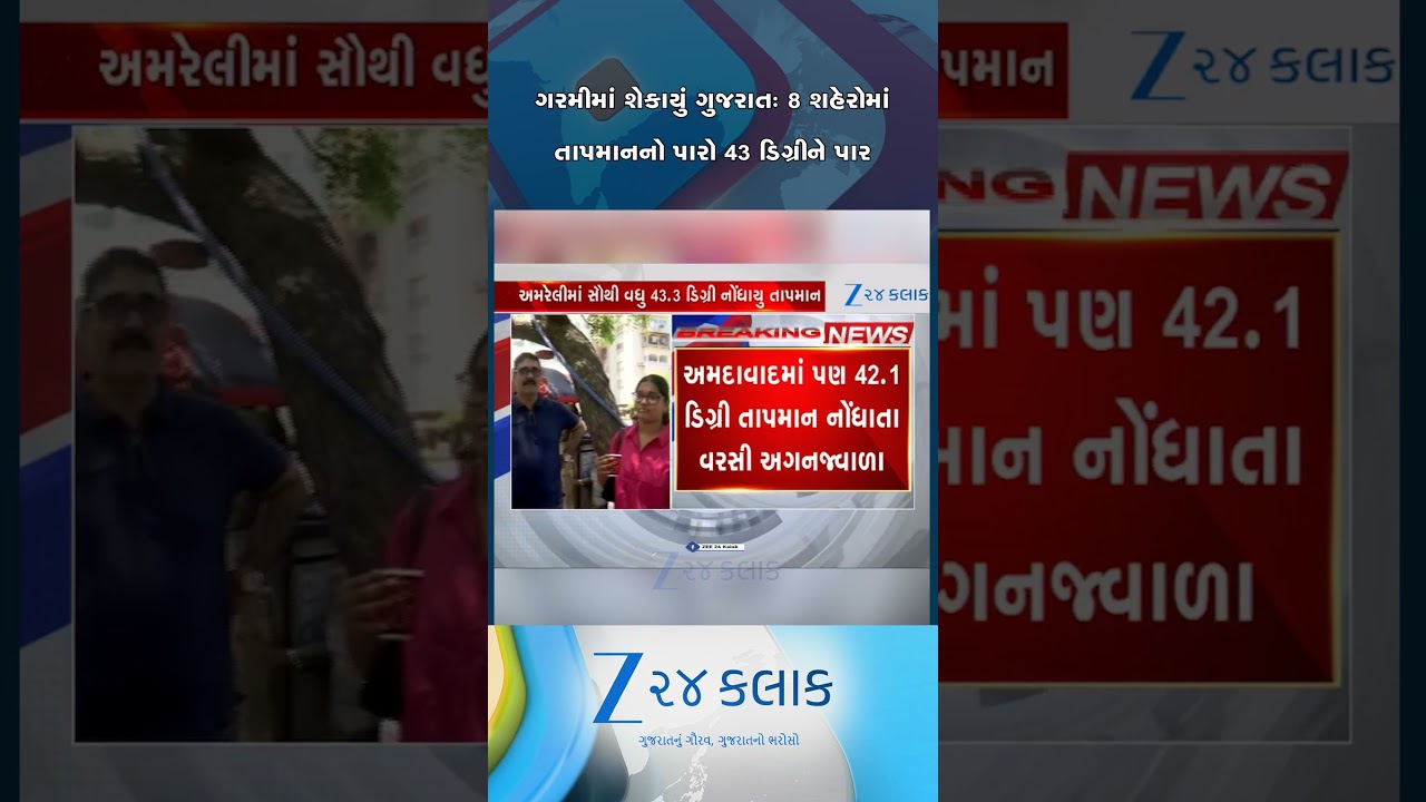 #Zee24Kalak ભયંકર ગરમીમાં શેકાયું ગુજરાતઃ રાજ્યના 8 શહેરોમાં તાપમાનનો પારો 43 ડિગ્રીને પાર…