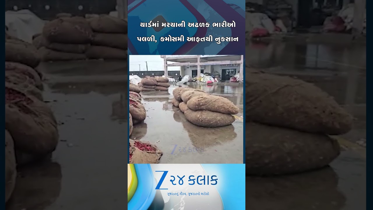 #Zee24Kalak મરચાની બધી ભારીઓ પાણીમાં પલળી, જેતપુર માર્કેટિંગ યાર્ડમાં મોટું નુકસાન, ખેડૂતો ચિંતામાં ગરકાવ