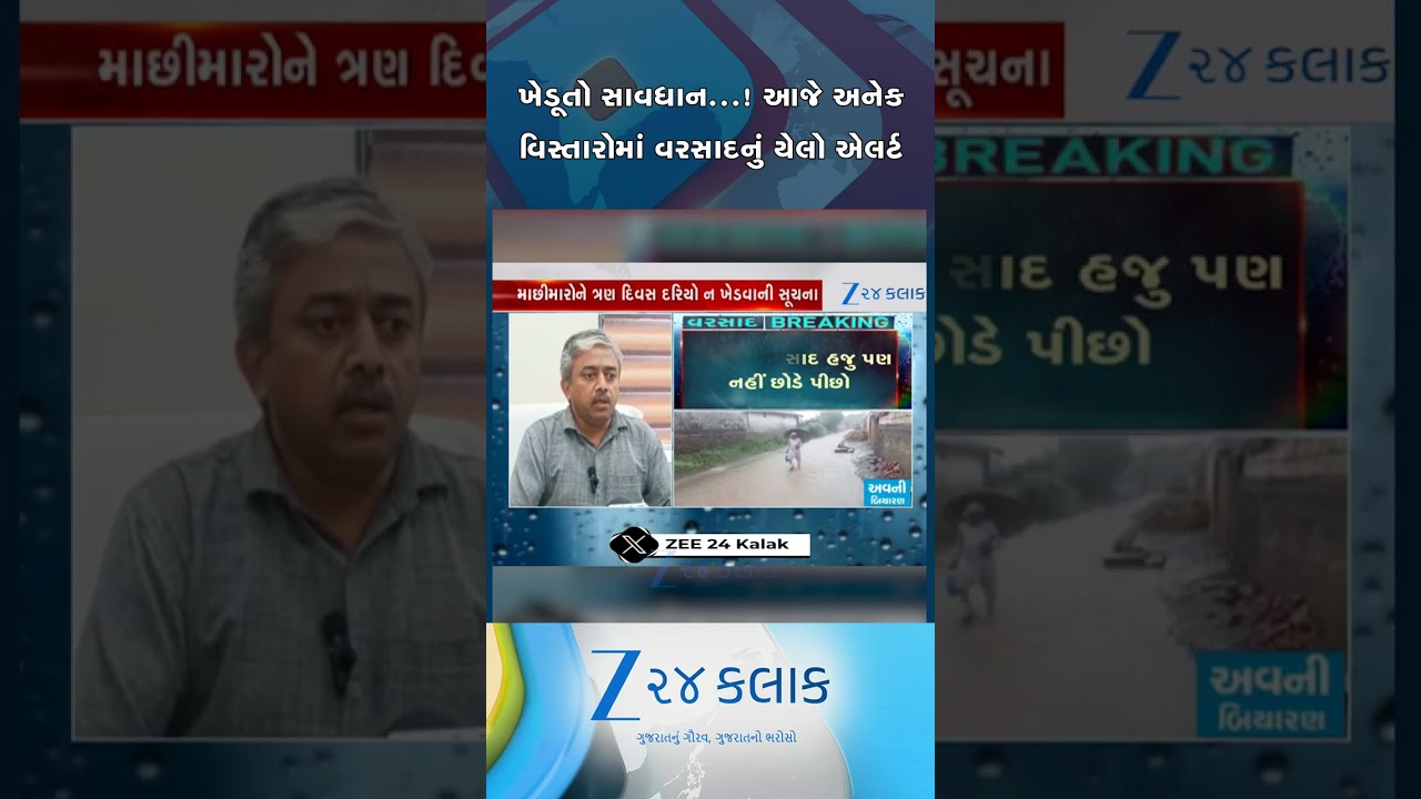 #Zee24Kalak રાજ્યના અનેક વિસ્તારોમાં વરસાદનુ યેલો એલર્ટ, માછીમારોને દરિયો ન ખેડવા સૂચના: હવામાન વિભાગે કરી આગાહી