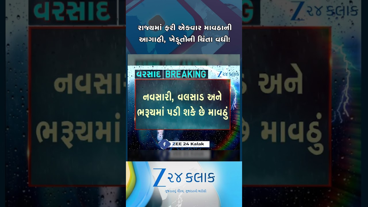 #Zee24Kalak રાજ્યમાં ફરી એકવાર માવઠાની આગાહી, દ.ગુજરાત સહિત રાજ્યના ખૂણે-ખૂણે કમોસમી વરસાદની શક્યતા
