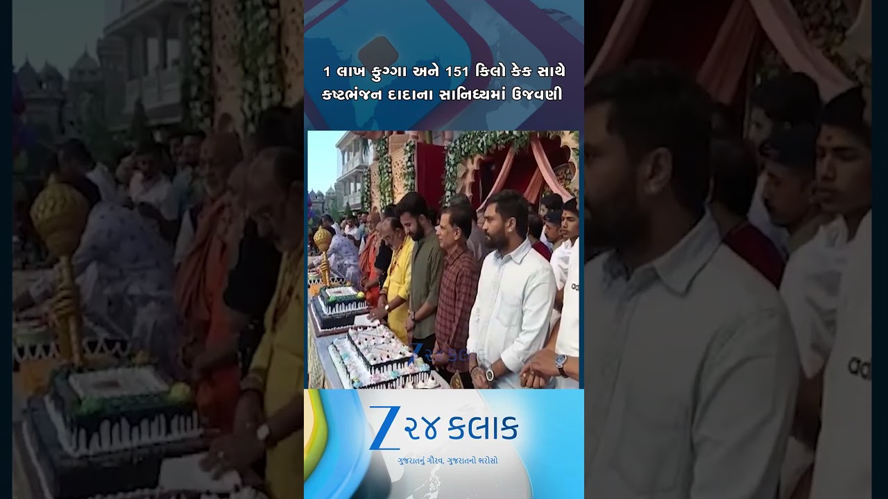 #Zee24Kalak લાખ ફુગ્ગાની છોળો ભક્તો પર ઉડાડી,કષ્ટભંજન દાદાના સાનિધ્યમાં 151 કિલો કેકથી હનુમાન જન્મોત્સવની ઉજવણી