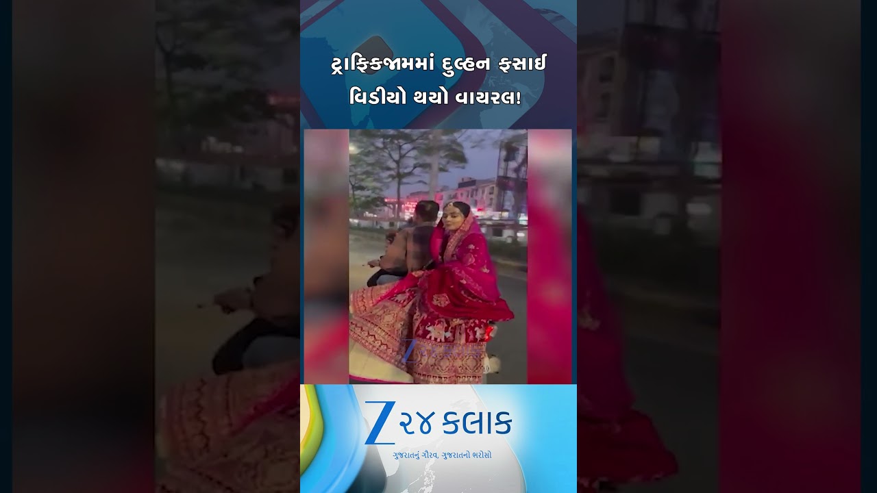 #Zee24Kalak વડોદરાઃ કલાકોના ટ્રાફિકજામમાં ફસાઈ દુલ્હન, ટુ-વ્હીલર પર બેસાડીને દુલ્હનને લગ્ન સ્થળે લઈ જવાઈ