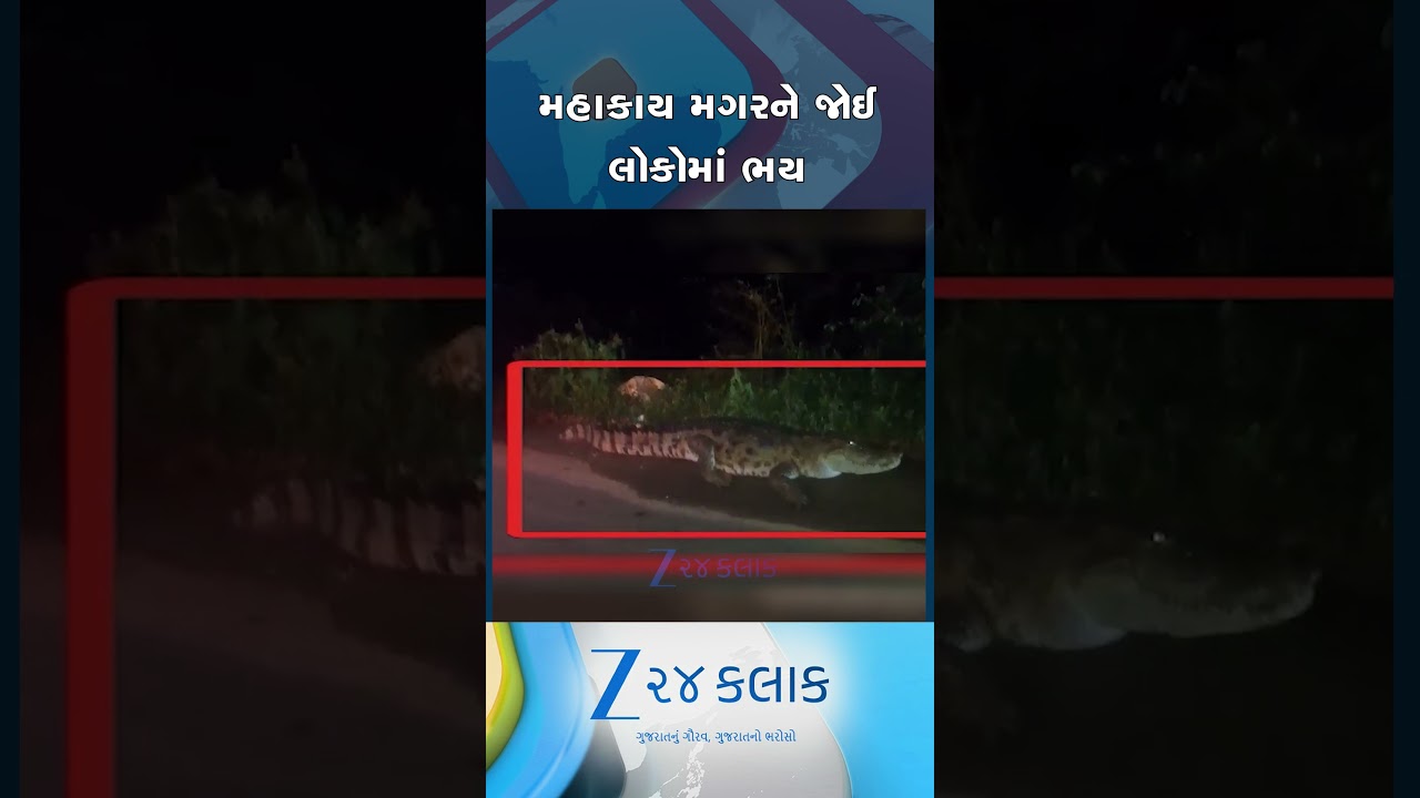 #Zee24Kalak વડોદરાના રહેણાંક વિસ્તારમાં ઘૂસ્યો મહાકાય મગર, રાતના અંધારામાં મગરને જોતા લોકોમાં ડરનો માહોલ..