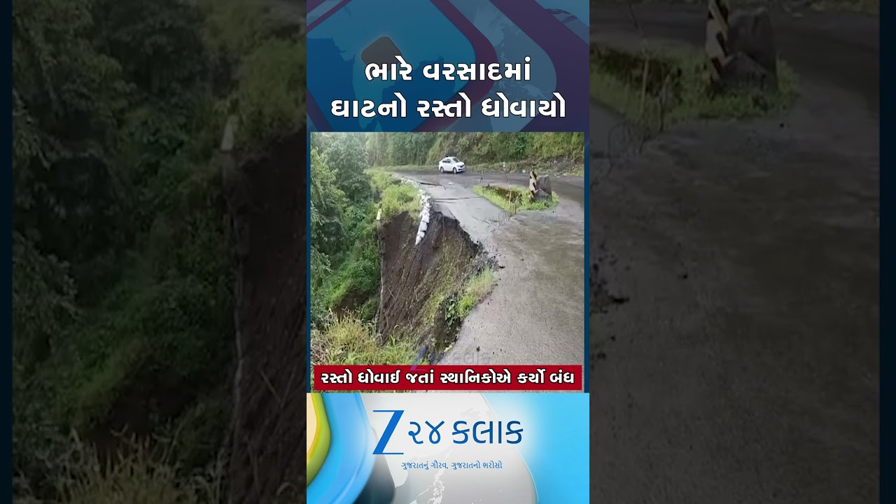 #Zee24Kalak વલસાડના કપરાડામાં ભારે વરસાદને કારણે રસ્તો ધોવાયો, રસ્તાની બાજુની દીવાલ ધસી પડતા રસ્તો કરાયો બંધ