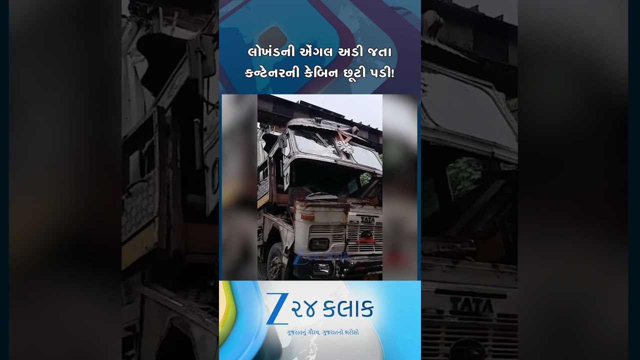 #Zee24Kalak સુરતના ખાંડ બજારમાં પ્રતિબંધ છતાં ગરનાળામાં ઘૂસાડેલા કન્ટેનરની એંગલ અડી જતા કેબિન છૂટી પડી #shorts