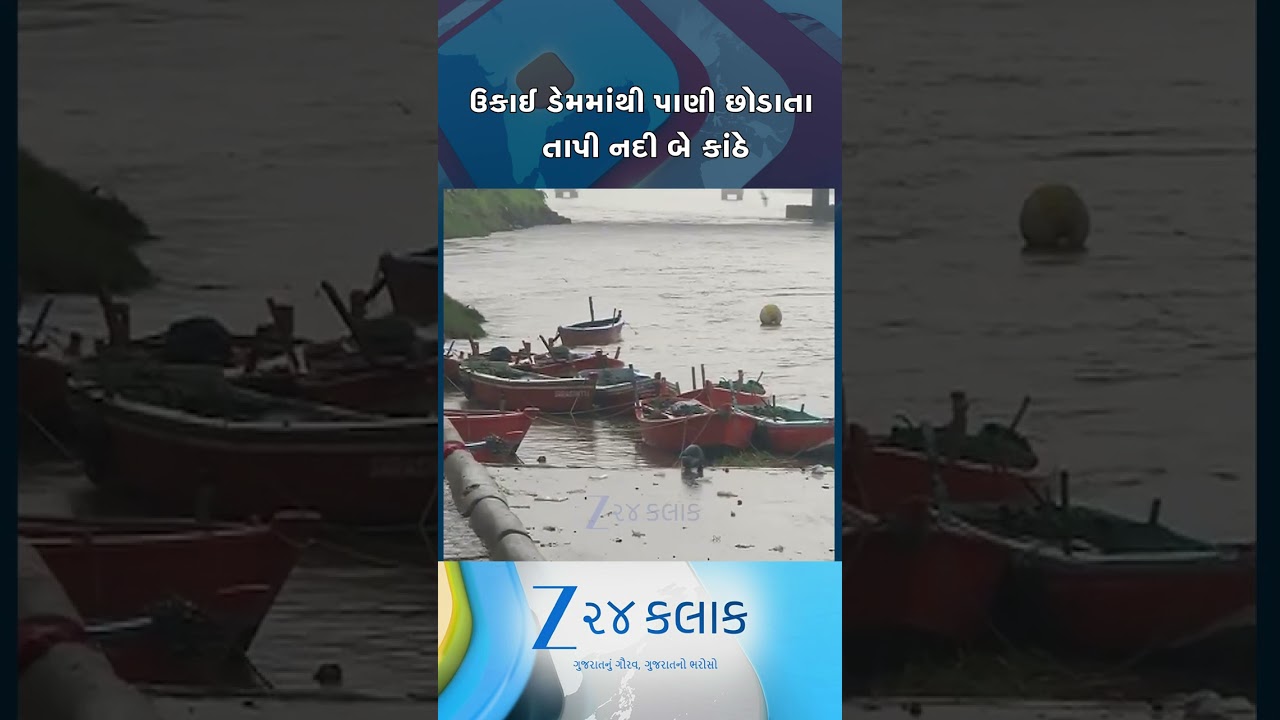 #Zee24Kalak સુરત: ઉપરવાસમાં ભારે વરસાદને કારણે ઉકાઈ ડેમમાં છોડાયું પાણી, તાપી નદી બે કાંઠે #gujaratrains #shorts