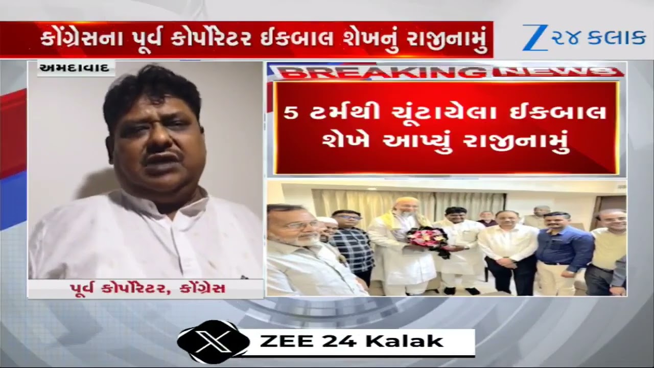 #Zee24Kalak સ્થાનિક સ્વરાજ્યની ચૂંટણી પહેલાં Ahmedabad Congressના પૂર્વ કોર્પોરેટર ઈકબાલ શેખે આપ્યું રાજીનામું