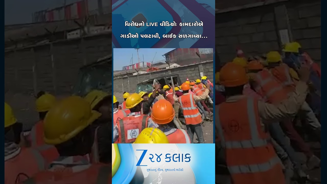 #Zee24Kalak હજીરામાં હિંસક વિરોધનો LIVE વીડિયોઃ સુરતમાં કામદારોએ ગાડીઓ પલટાવી આખી AMNS કંપની માથે લીધી