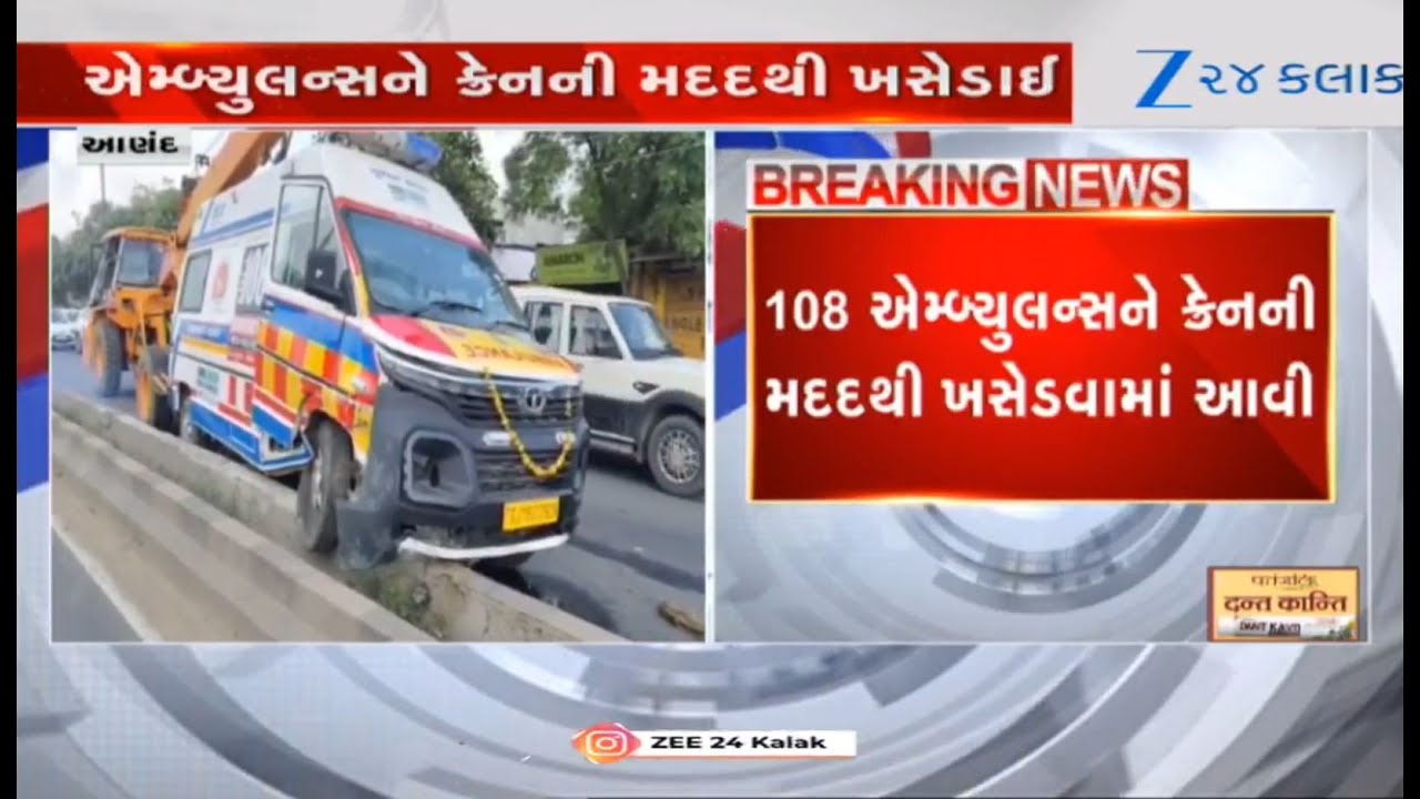 #Zee24Kalak 108 ambulance meets with an accident near Chikhodara chowkdi of Anand; 2 injured shifted to hospital