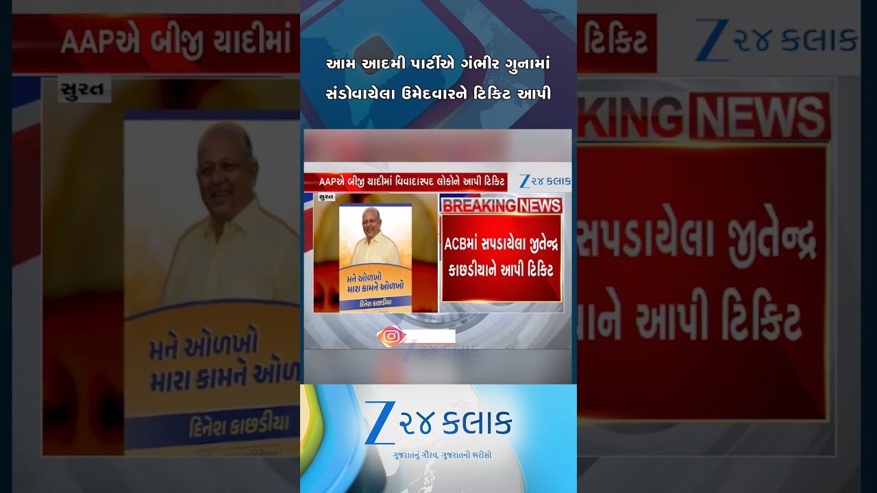 #Zee24Kalak AAPએ ગંભીર ગુનામાં સંડોવાયેલા ઉમેદવારને આપી ટિકિટ,સુરતમાં ભારે વિરોધ બાદ પાર્ટીએ બદલી નાખ્યા ઉમેદવાર