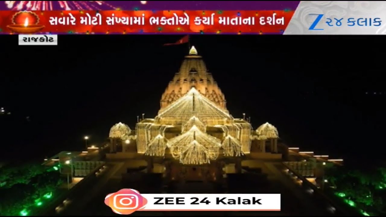 #Zee24Kalak Aerial View: Khodaldham temple in Rajkot illuminated on auspicious occasion of Gujarati New Year