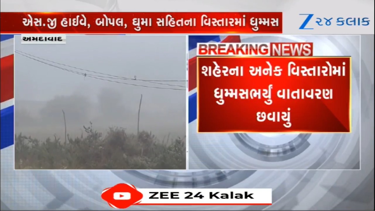#Zee24Kalak Ahmedabadમાં આજે વાતાવરણ બદલાયું, બોપલ-ઘુમા સહિતના વિસ્તારમાં વહેલી સવારે છવાયું ગાઢ ધુમ્મસ