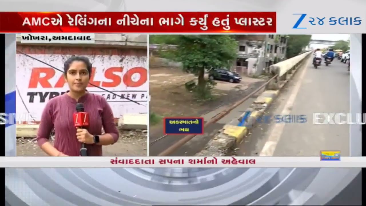 #Zee24Kalak Ahmedabadમાં વધુ એક બ્રિજની રેલિંગનો ભાગ ધરાશાયી, કોઈ દુર્ઘટના સર્જાશે તો જવાબદારણ કોણ?