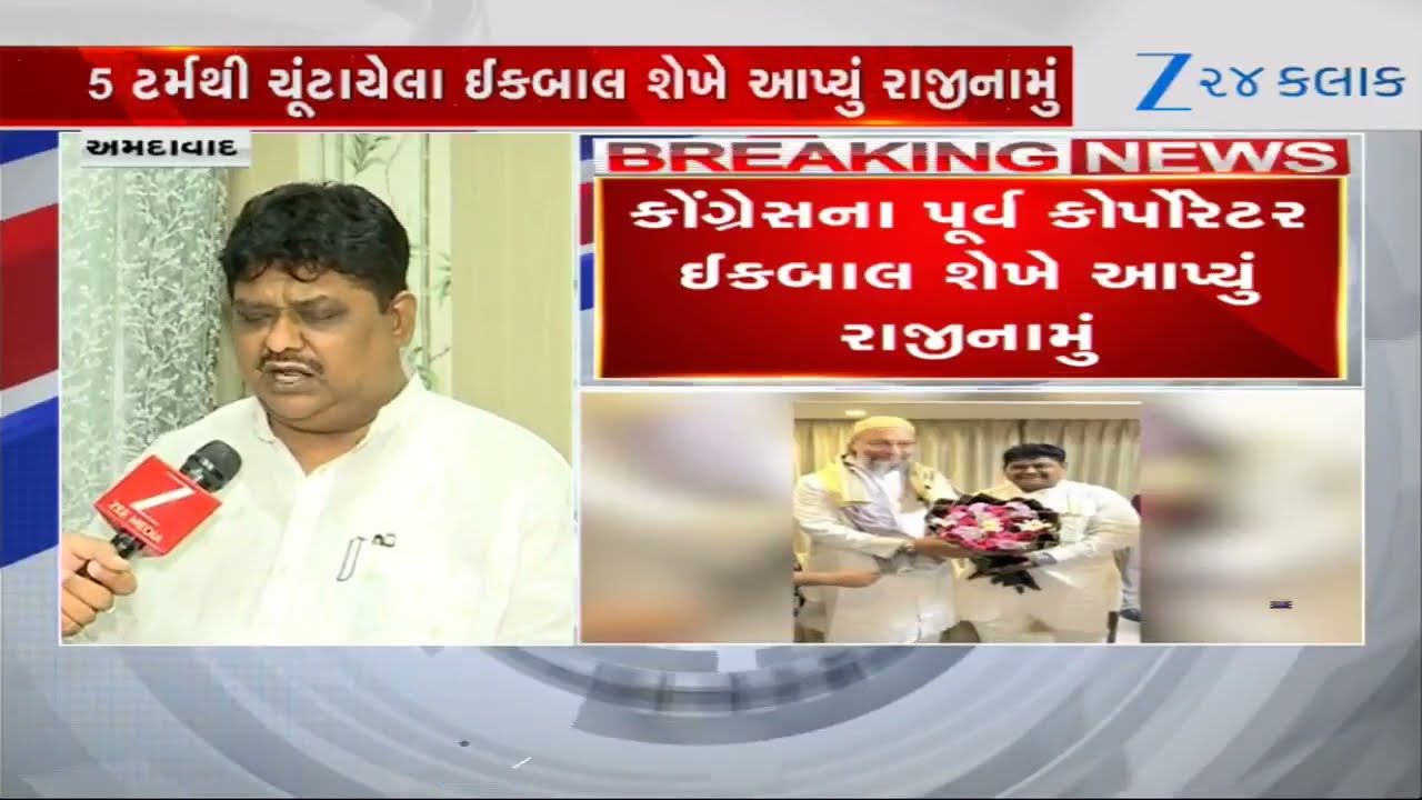 #Zee24Kalak Ahmedabad Congressમાં ગાબડું: પૂર્વ કોર્પોરેટર Iqbal Sheikhનું રાજીનામું; AIMIMમાં જોડાય તેવી શક્યતા
