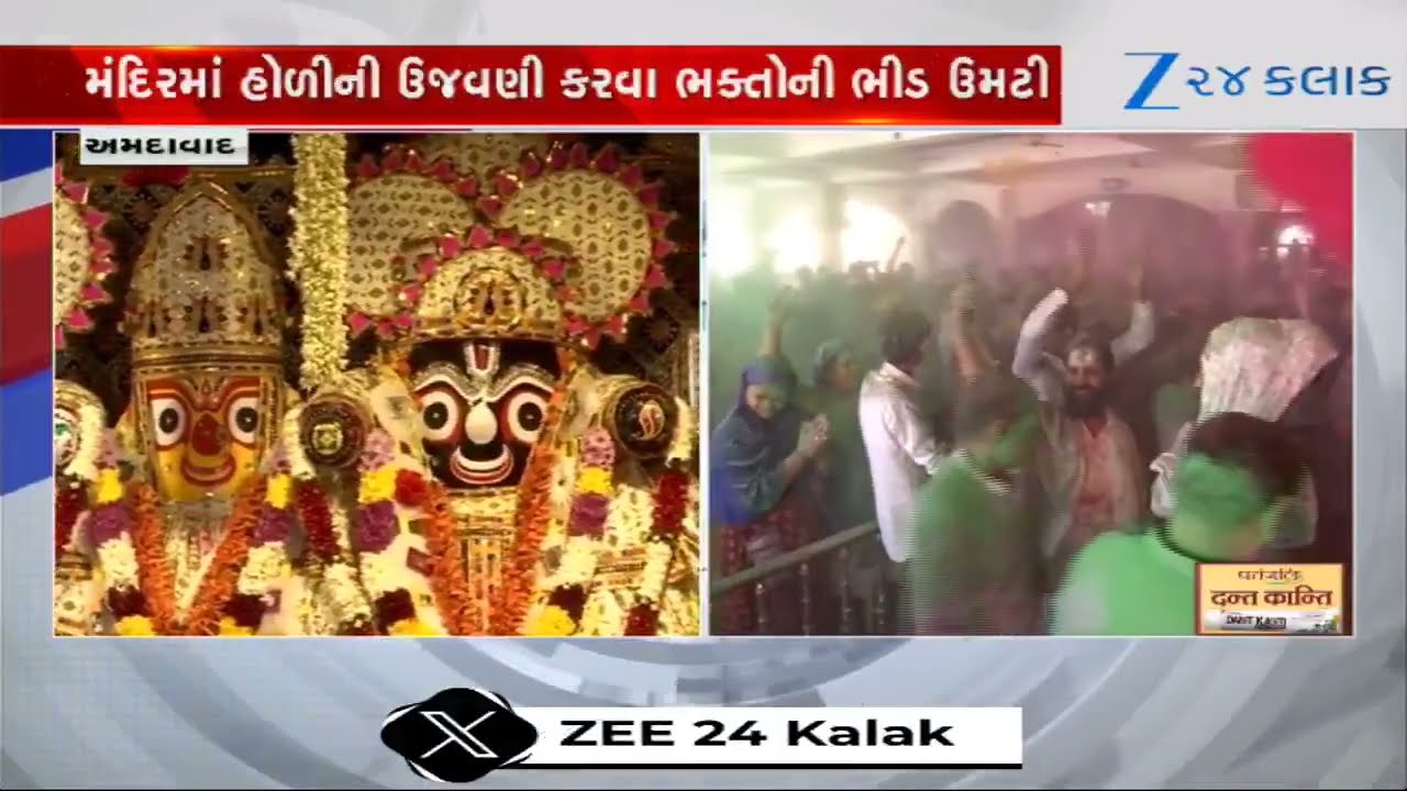 #Zee24Kalak Ahmedabad Jagannath મંદિરમાં ભવ્ય ફૂલડોળ ઉત્સવ; ગલગોટા અને ગુલાબની પાંખડીઓથી ભક્તોએ રમી હોળી