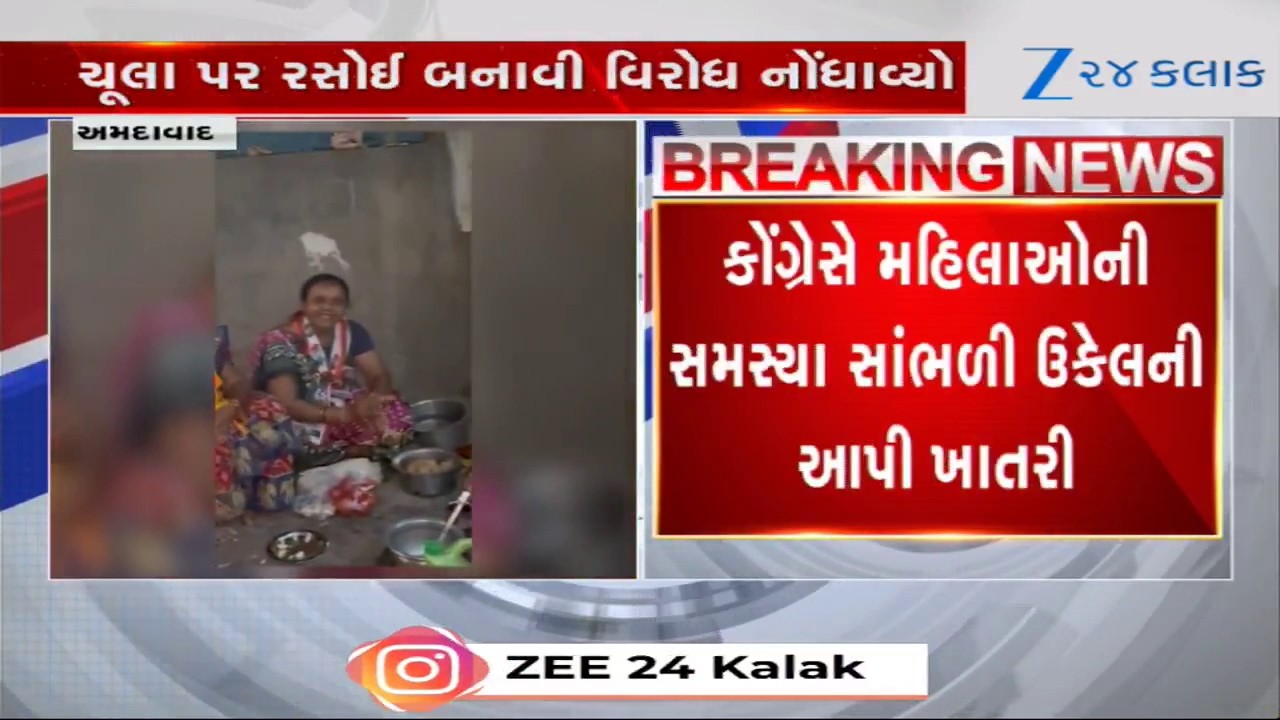 #Zee24Kalak Ahmedabad: Ramol-Hathijanમાં Congressનો અનોખો પ્રચાર, મહિલાઓએ ચૂલા પર રસોઈ બનાવી નોંધાવ્યો વિરોધ