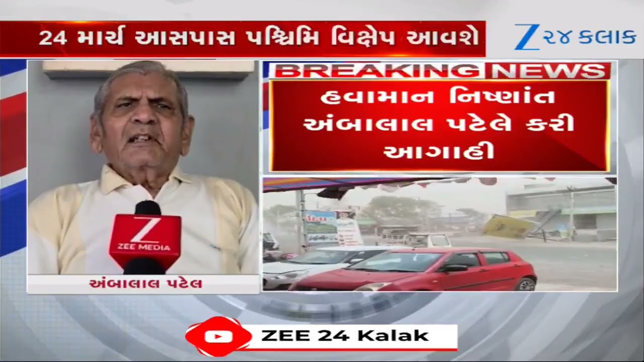 #Zee24Kalak Ambalal Patelની આગાહી: Gujaratમાં પલટાશે વાતાવરણ; 24 માર્ચથી વાદળો છવાશે, 50 કિમીની ઝડપે ફૂંકાશે પવન