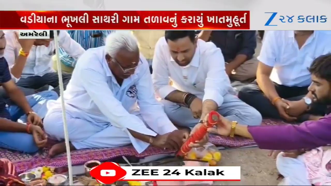 #Zee24Kalak Amreli:મંત્રી Kaushik Vekariyaએ પાળ્યું વચન! ભૂખલી સાથરી ગામમાં તળાવનું ખાતમુહૂર્ત; ગ્રામજનોમાં ખુશી