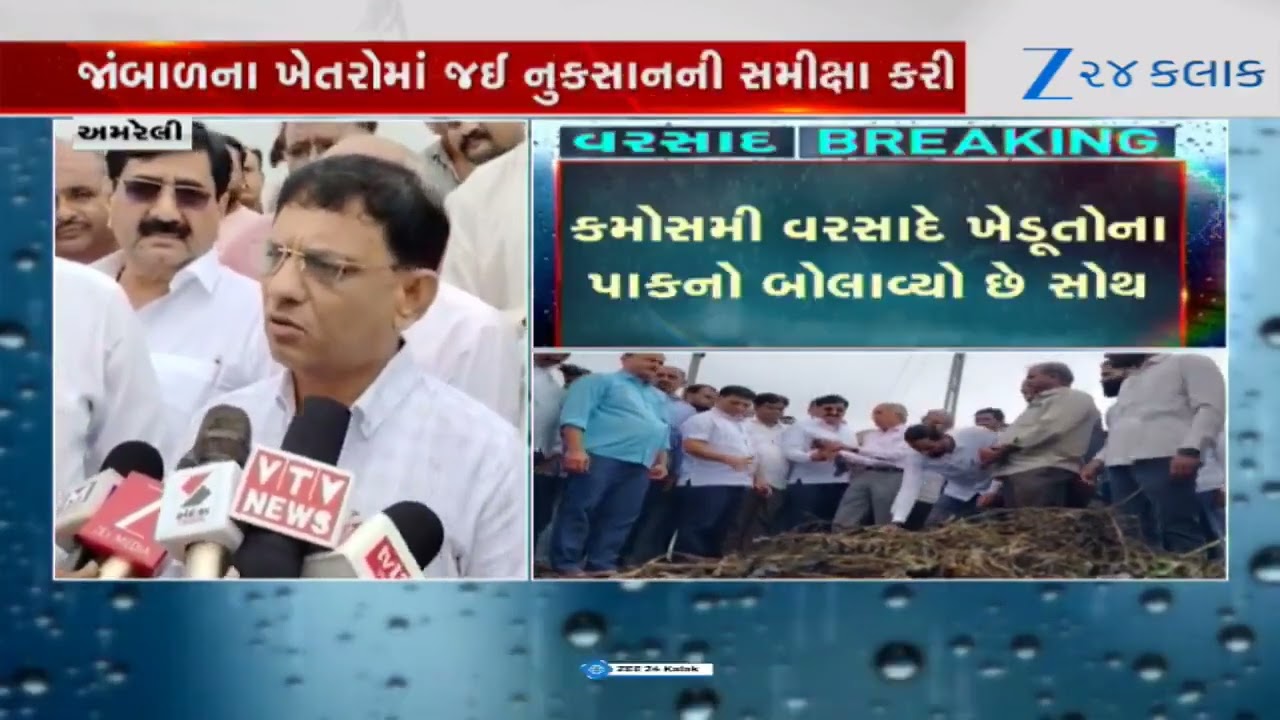 #Zee24Kalak Amreli જિલ્લાની મુલાકાતે મંત્રી Kaushik Vekariya, જાંબાળ ગામના ખેતરોમાં જઈ કરી નુકસાનની સમીક્ષા