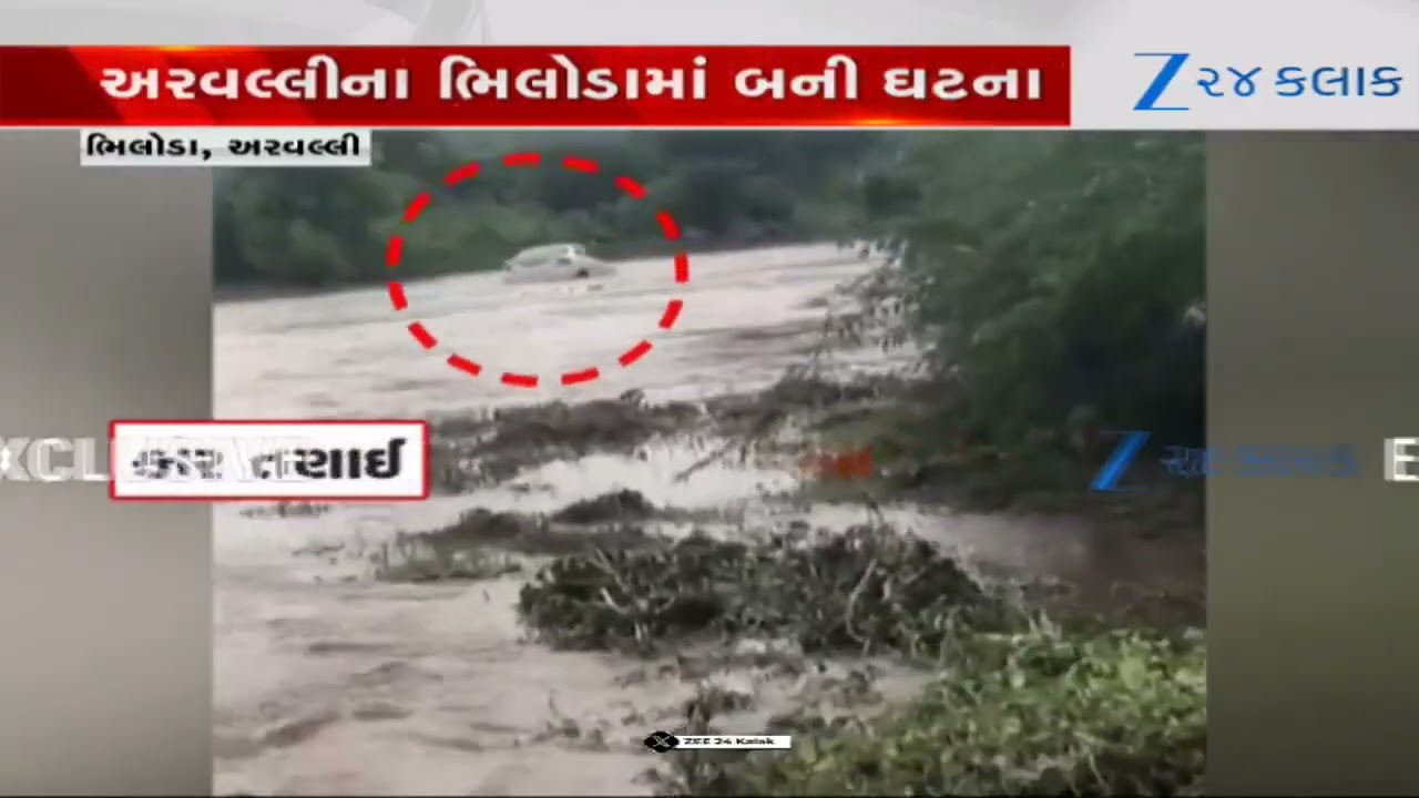 #Zee24Kalak Aravalliના ભિલોડાના ઈન્દ્રાસી નદીમાં કાર તણાઈ, ઘટનામાં 2 લોકોનો બચાવ, અન્ય એક વ્યક્તિ લાપતા