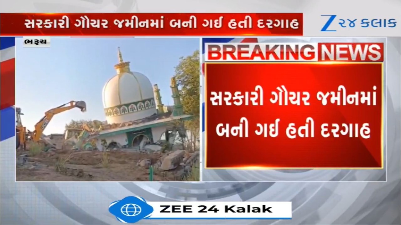 #Zee24Kalak Authorities raze several religious structures built on Gauchar land at Govali village of Bharuch