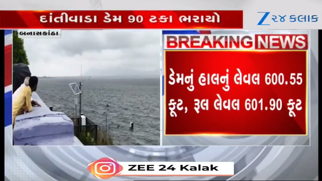 #Zee24Kalak Banaskanthaની જીવાદોરી સમાન દાંતીવાડા ડેમ 90 ટકા ભરાયો, નીચાણવાળા વિસ્તારોને સાવધ રહેવા સૂચના