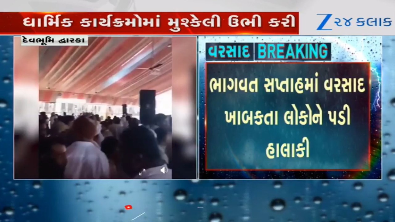 #Zee24Kalak Bhagvat Saptah at Dwarka’s Kalyanpur called off following heavy rainfall, strong winds in the region