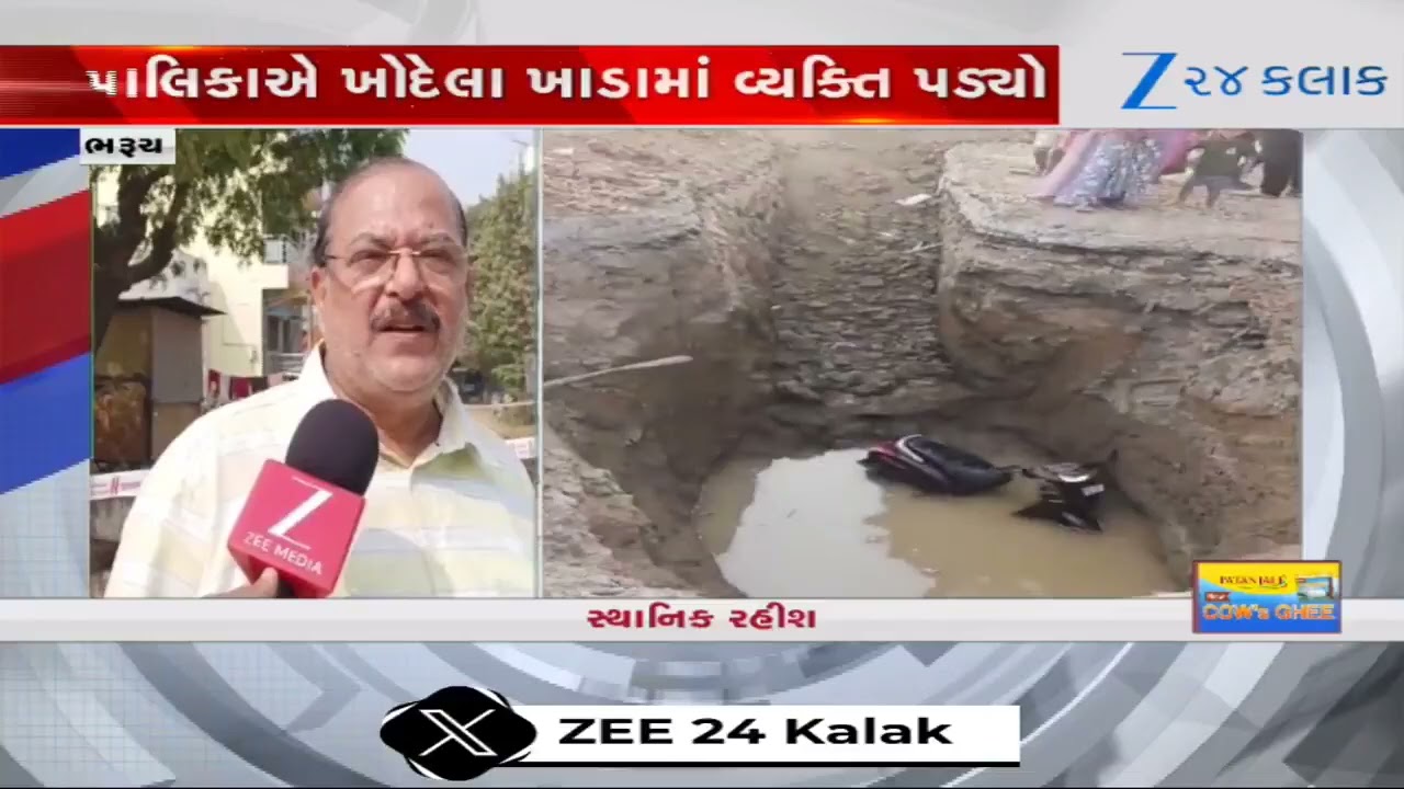 #Zee24Kalak Bharuch: અંકલેશ્વર પાલિકાએ ખોદેલા ખાડામાં વ્યક્તિ પડ્યો, તંત્રની કામગીરી સામે લોકોમાં રોષ